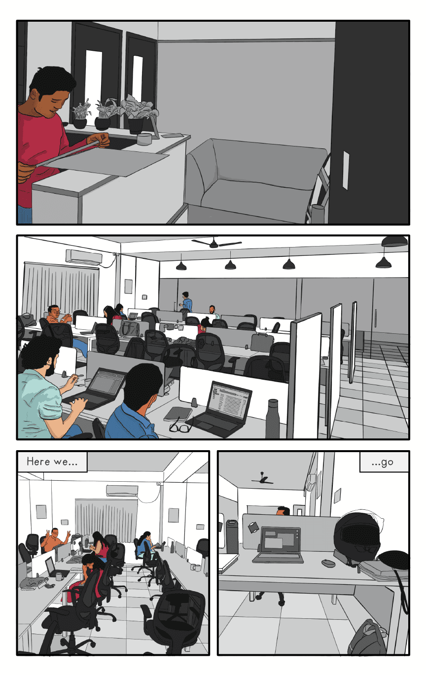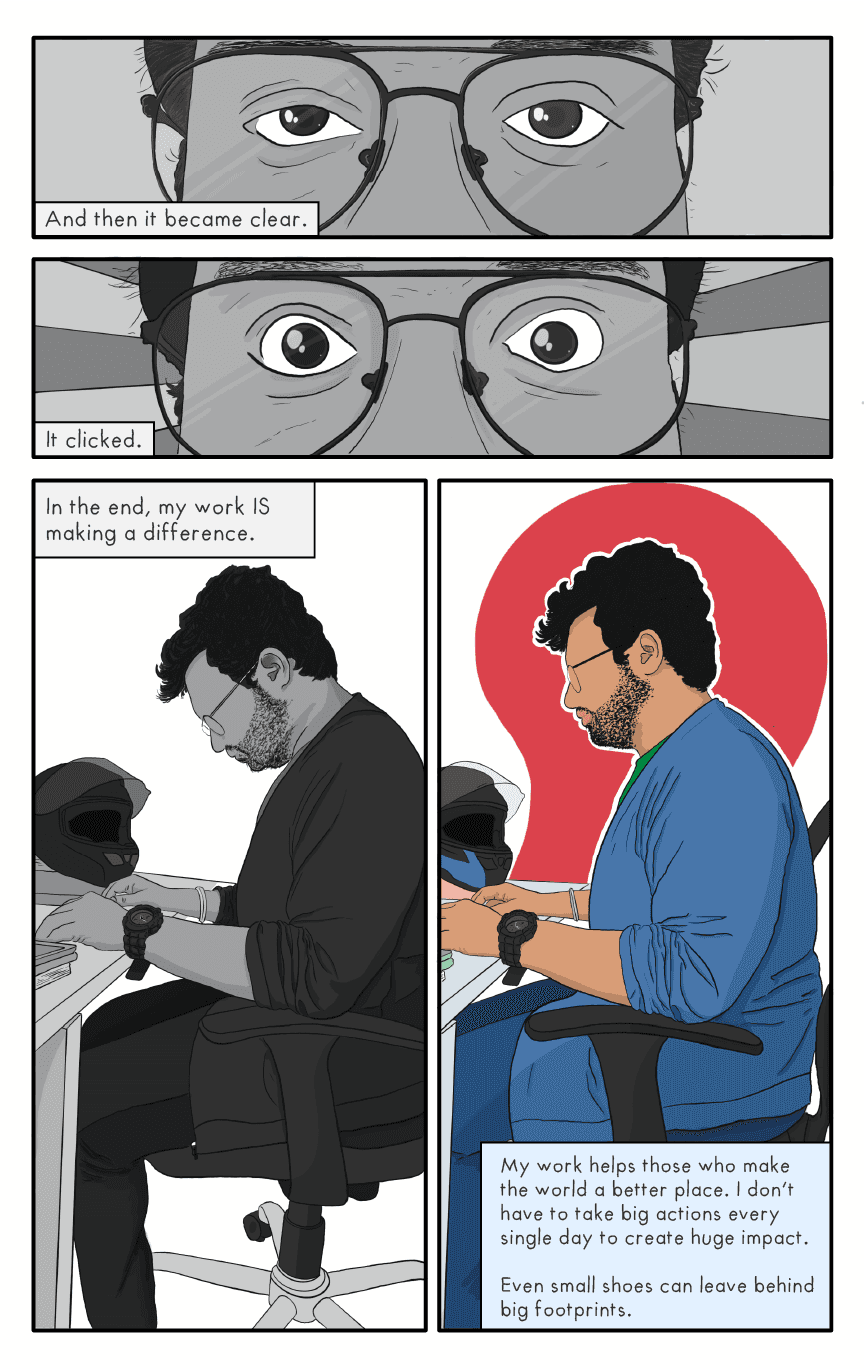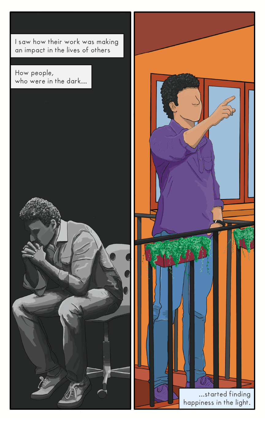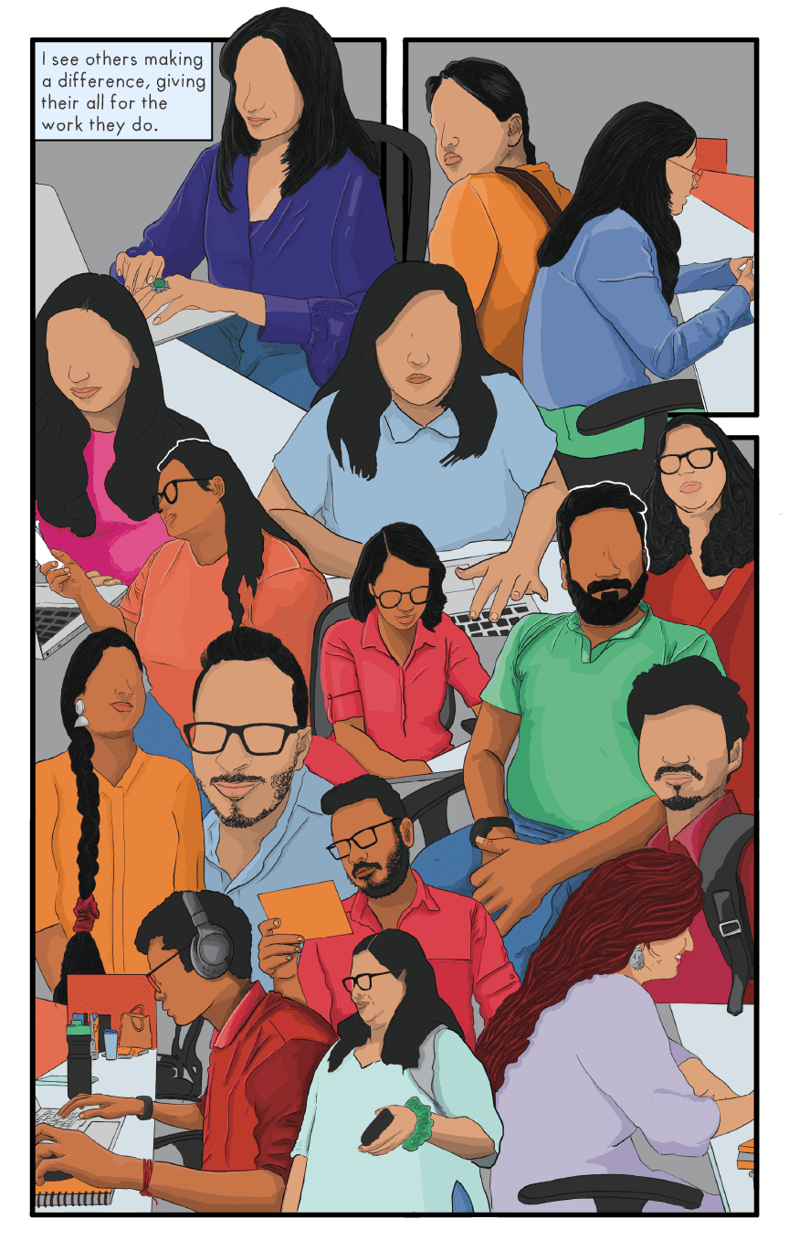 This comic speaks about imposter syndrome, something most people struggle with within themselves. I made this comic as a way to start a conversation, and as a space to vent out my feelings and inner thoughts.